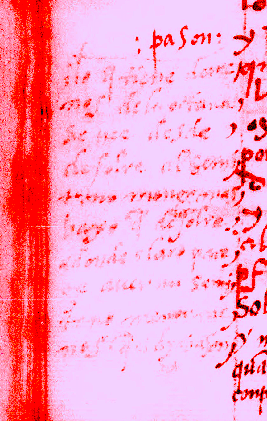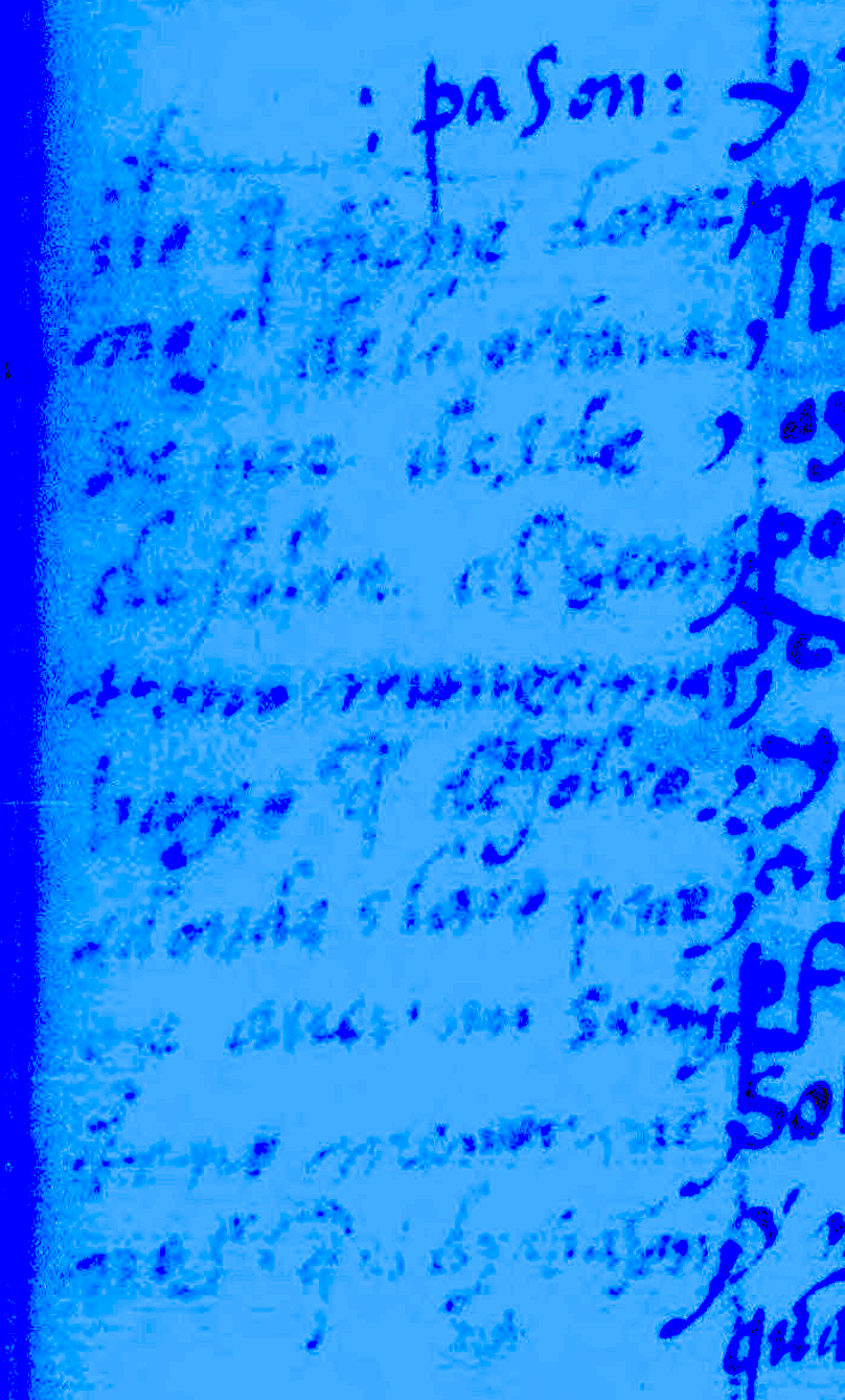[Marg. nota: mi contra fa no se dara en 2ª ni en 4ª ni 5ª ni 7ª ni 8ª ni 9ª ni en sus conpuestas por la razon en el fin asignada, mas dandose lo menos sera mejor]. Y es de notar que mi contra fa nunca puede venir que sea specie perfeta, por que si viniese en octava no seria specie perfeta. Si en quinta tanpoco seria perfeta. La causa es un semitono [borrado] maior que a la octava viene de mas del dyapason, y a la quinta de menos del dyapente, como pareçe claramente de cesolfaut [grave] al semitono de entre csolfaut [agudo] y delasolre [agudo] y [borrado: en] de fefaut grave al semitono de entre fefaut agudo y gsolreut, adonde claro se ve lo mas que la octava tiene, scilicet el semitono maior [sobre el dyapason] y de [b fa] ♮ mi a fefaut se ve [el semitono maior] que tiene de menos la quinta [que el diapente].